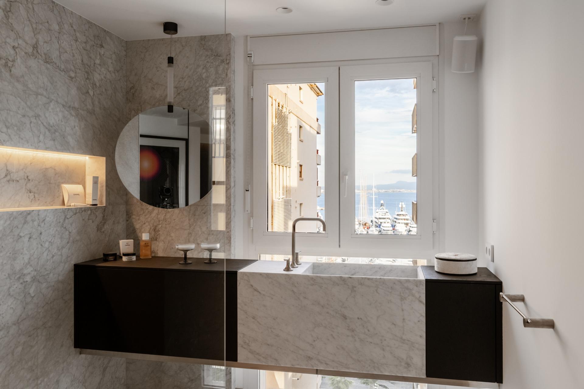 La terraza de aproximadamente 102 m² se convierte en el gran protagonista de la propiedad, ideal para disfrutar de comidas al aire libre, momentos de relax o reuniones sociales con vistas panorámicas al mar y al puerto, en uno de los enclaves más deseados de Palma.