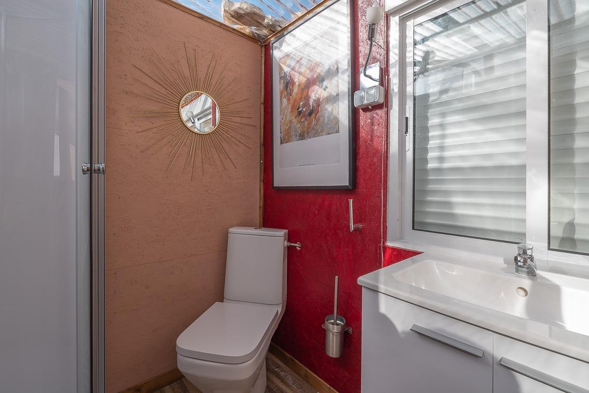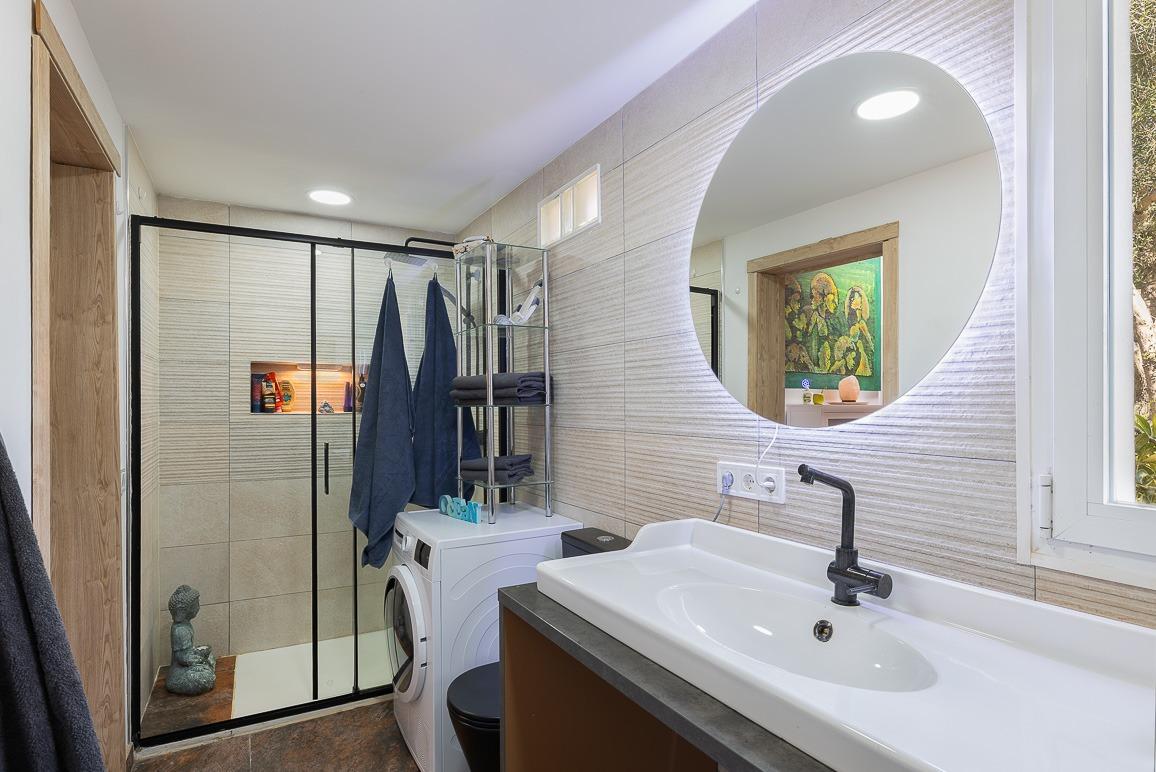 El antiguo garaje ha sido transformado en un estudio moderno con baño en suite, ideal como alojamiento independiente para invitados, familiares o incluso como espacio de trabajo.