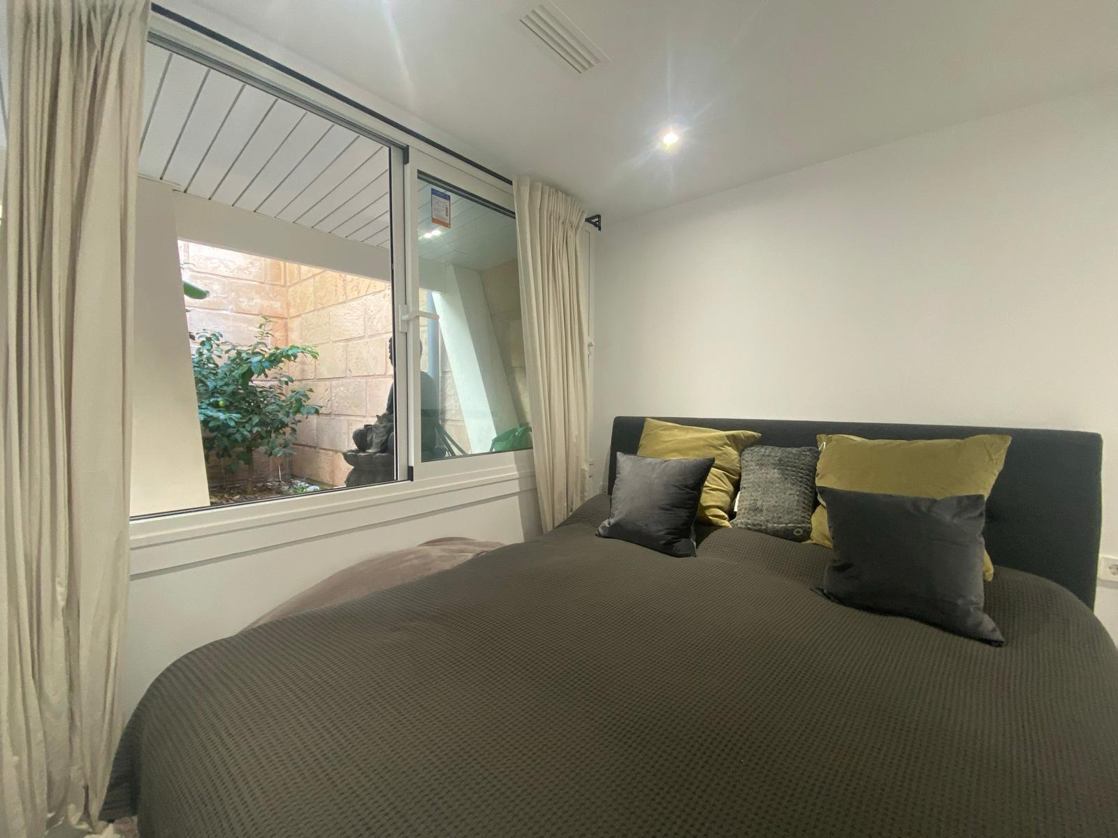 El salón, inundado de luz natural gracias a un amplio ventanal, conduce a una cómoda terraza donde se puede disfrutar de la vista al mar y a la piscina, ofreciendo un espacio perfecto para relajarse y disfrutar del estilo de vida mediterráneo. Dos habitaciones confortables y un baño con una amplia ducha italiana completan el interior del apartamento.